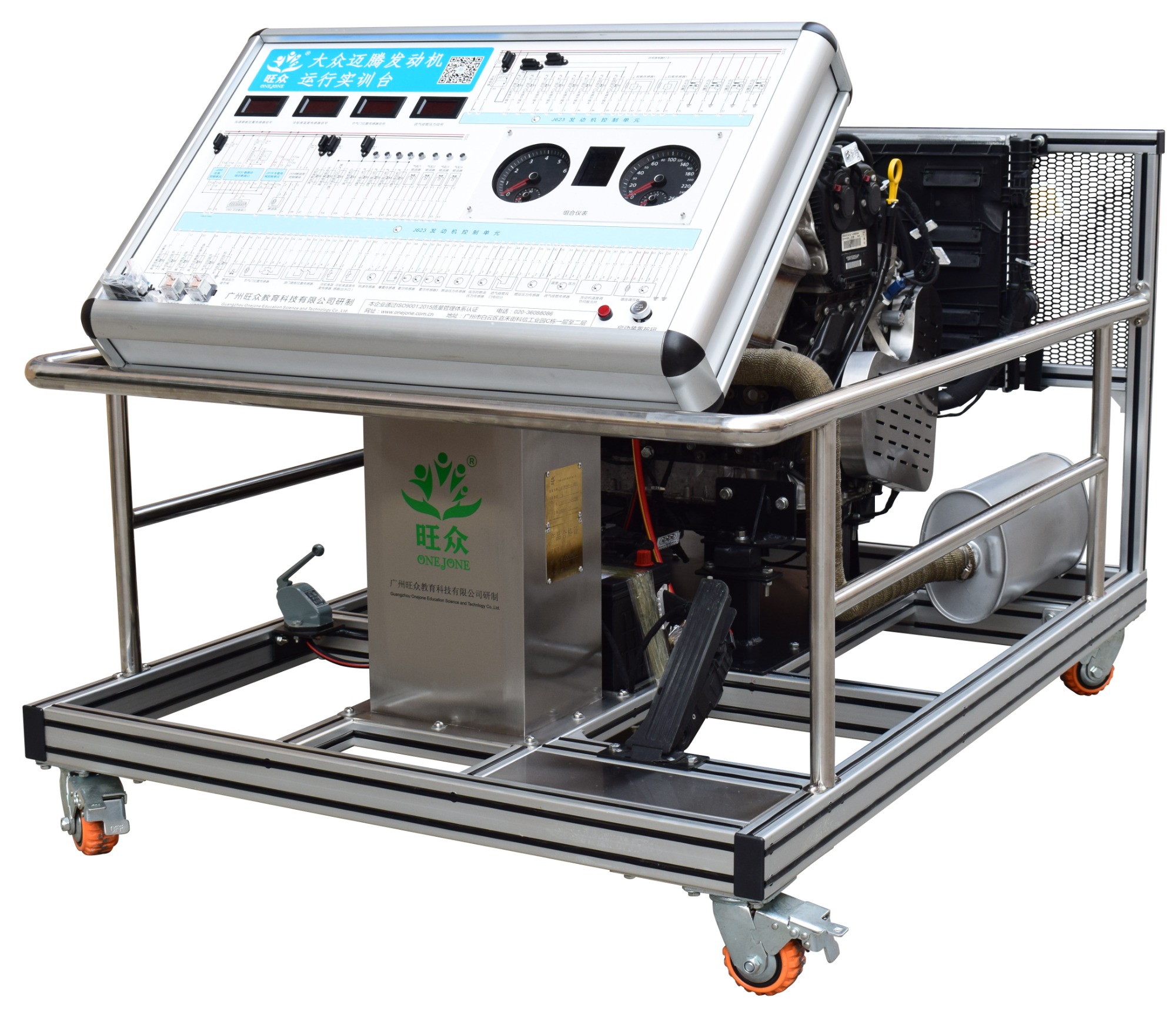 该设备采用大众迈腾B8 2.0TSI缸内直喷电控汽油发动机为基础,对发动机可进行起动、加速、减速等工况的实践操作,真实展示大众TSI缸内直喷电控汽油发动机的组成结构和工作过程。适用于中高等职业技术院校、普通教育类学院和培训机构对发动机检测和维修实训的教学需要。