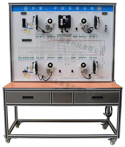 产品介绍 采用大众帕萨特电动门窗后视镜为基础,可实现汽车车窗与中控系统工作,具有无线智能故障设置与排除功能,适用于各大高职院校及中职院校汽车检测与维修实训。制作工艺 1、支撑架采用1.5MM厚40MM*60MM国标方管焊接而成; 2、台架油漆经酸洗、除锈、高温烤漆,防刮,防锈; 3、台架支撑采用